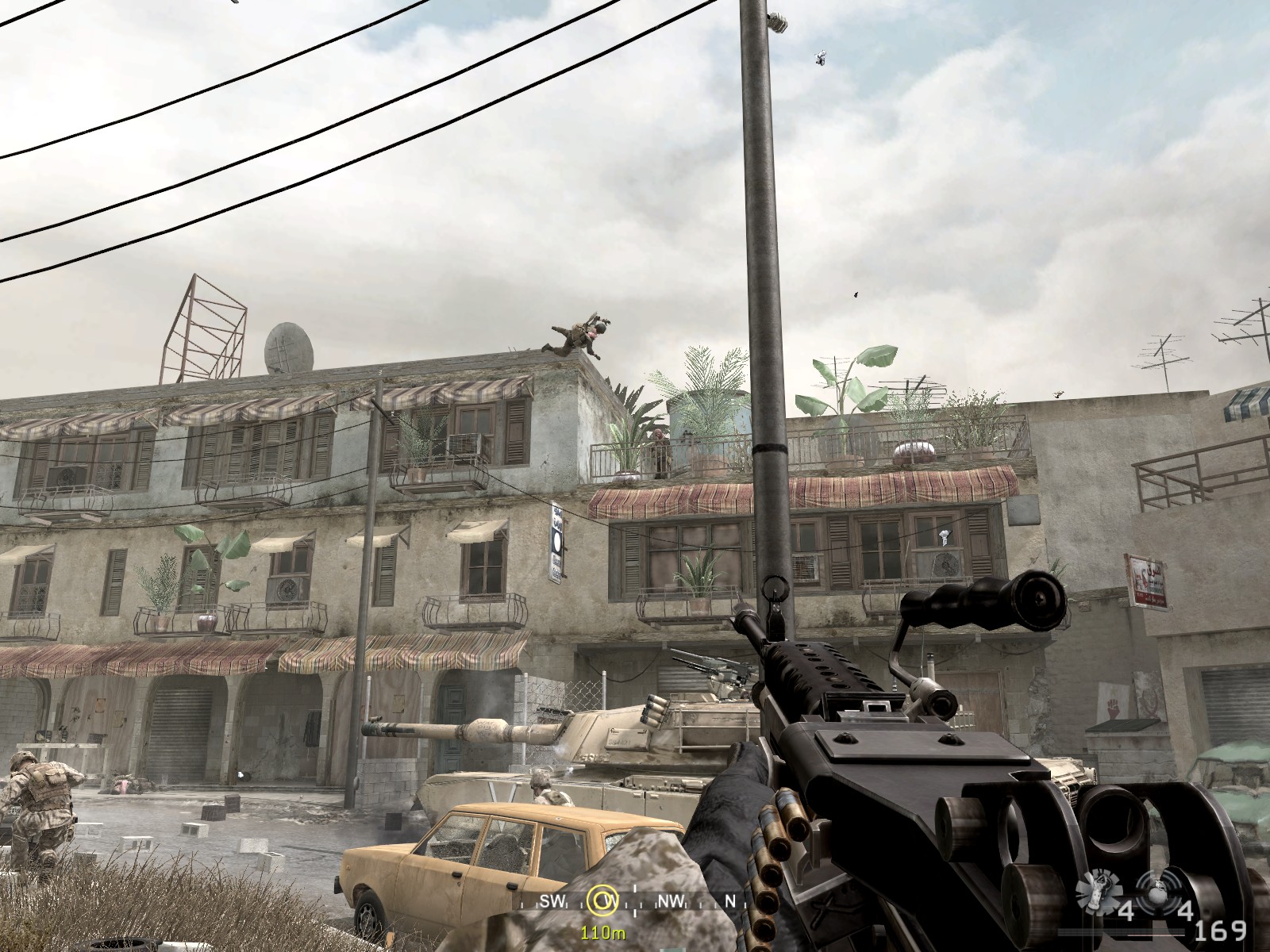 Call of Duty 4 single player, I shoot an enemy off the roof.