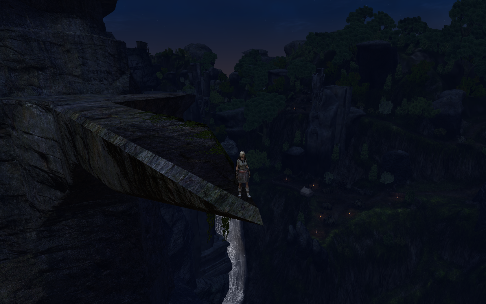 Nice view from the far side of the Prison Colony, in Thunder River. Note the huge statue in the background.